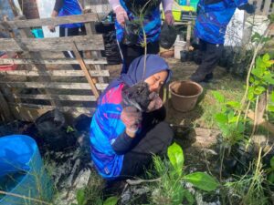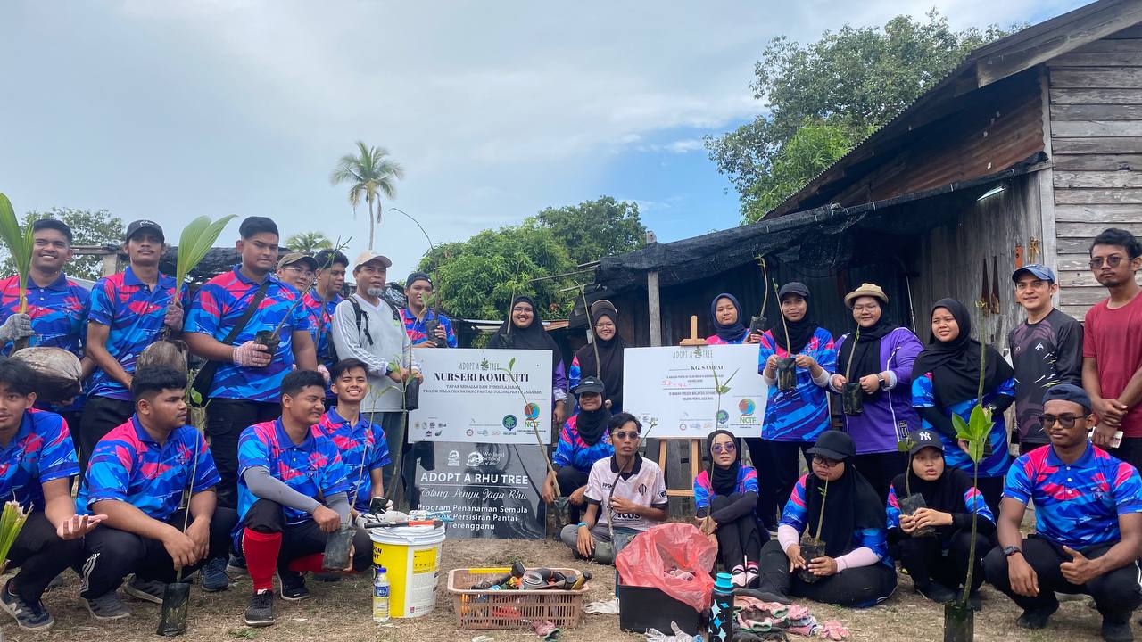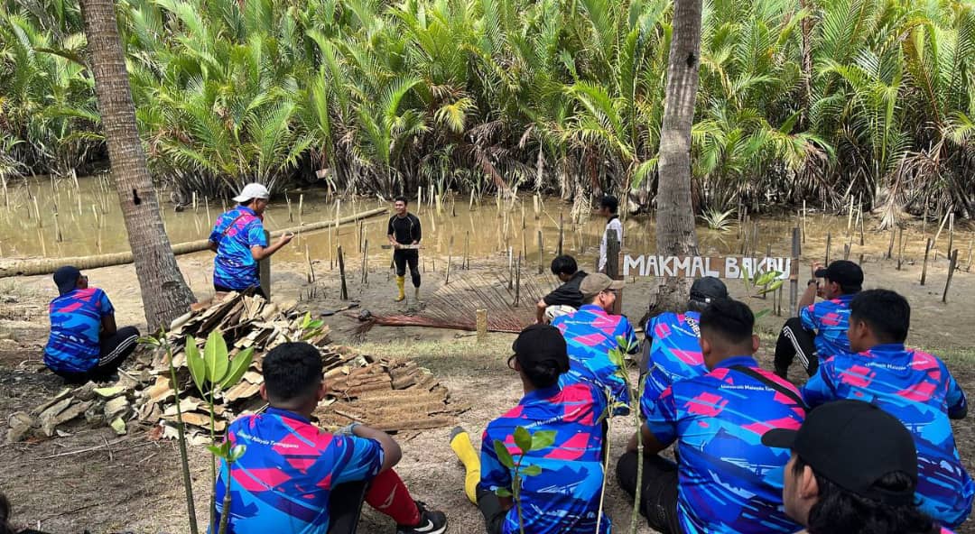 The program starts at 8:00 am and ends at 1:00 pm. The activity started with the cleaning of the nursery and the activity of sowing 50 gelam saplings and 42 coconut trees at Rumah Tok. Then, the session continued by planting 28 mangrove saplings in the Mangrove Lab area. The last activity, students were taken to find a location in the area around the mangrove swamp.
