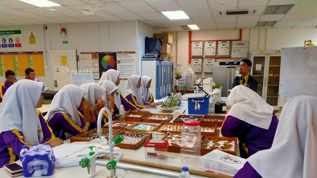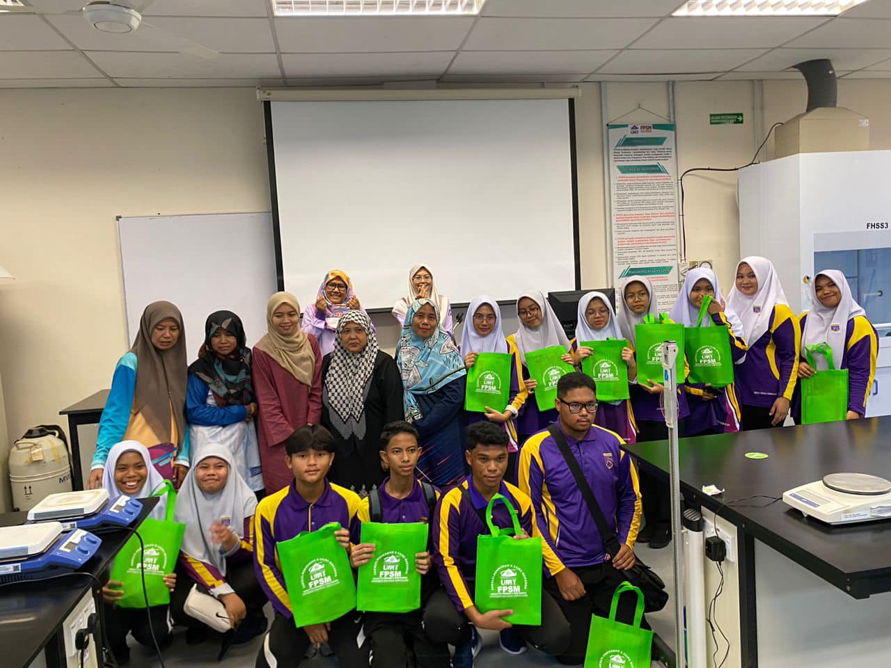 A total of 40 Form 4 students from various streams – Sports Science, Agricultural Science, and Economics with 4 accompanying teachers (Pn Nihan bt Ahmad, Ms Saleha bt Hasyim, Ms Halimah bt Abd Rahman and Miss Azlina bt Shaari). The program ran smoothly with the help and cooperation of lecturers (Dr Iffah Hazirah, Dr Nurul Faziha and Dr Nabila), officers of the Plant Processing Technology Laboratory, Human Nutrition Laboratory and FPSM Saltwater and Freshwater Hatchery and assisted by undergraduate students (Nor Afifah, Shaifah Nor Intansabitah and Fatin Nur Atillia-usher). The purpose of this visit is for students get information related to courses offered and serve as a guide for students to continue learning to a higher level. Hopefully the cooperative relationship between SMK Seri Kundang and FPSM will continue with a series of promotions later.