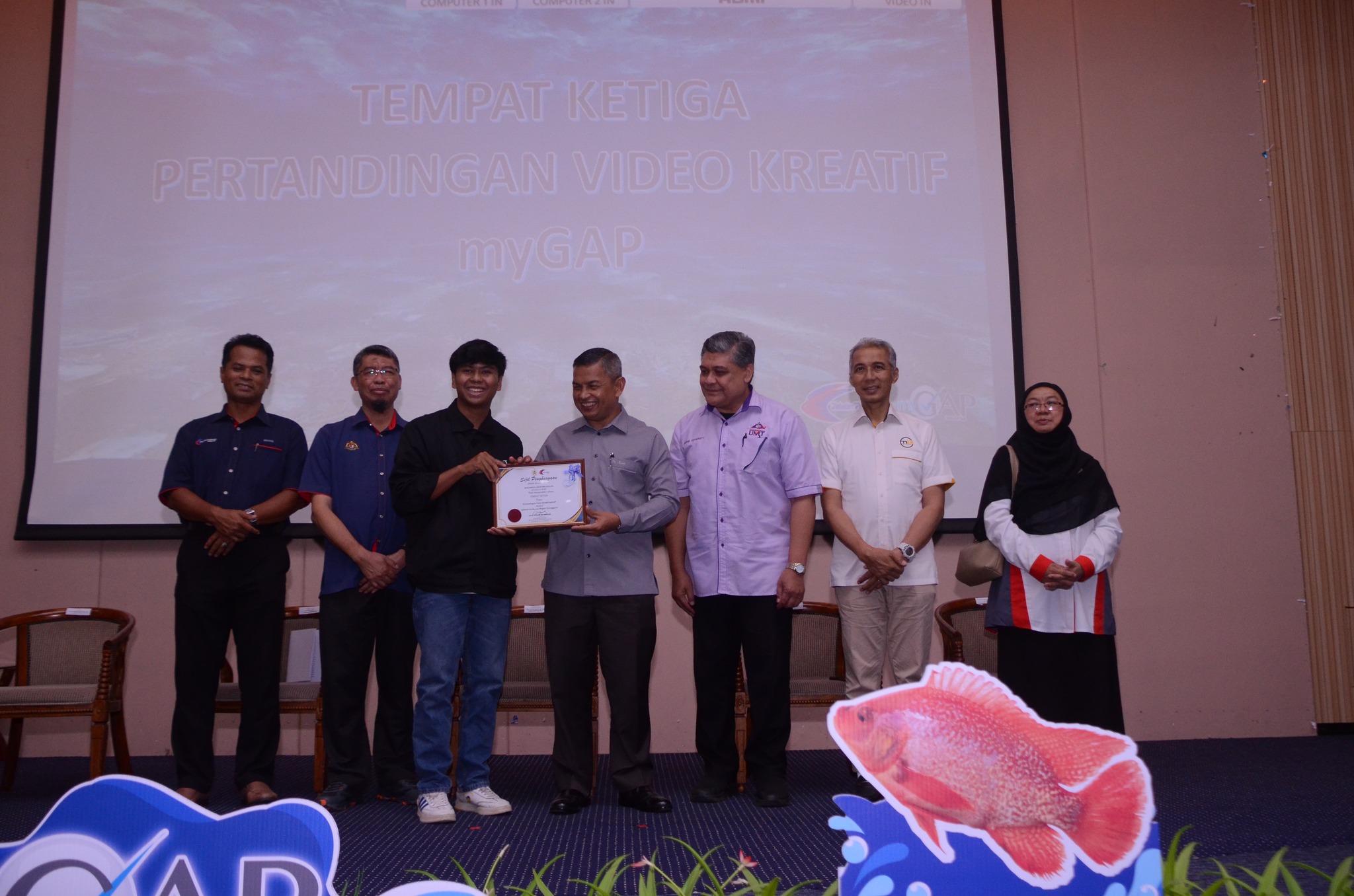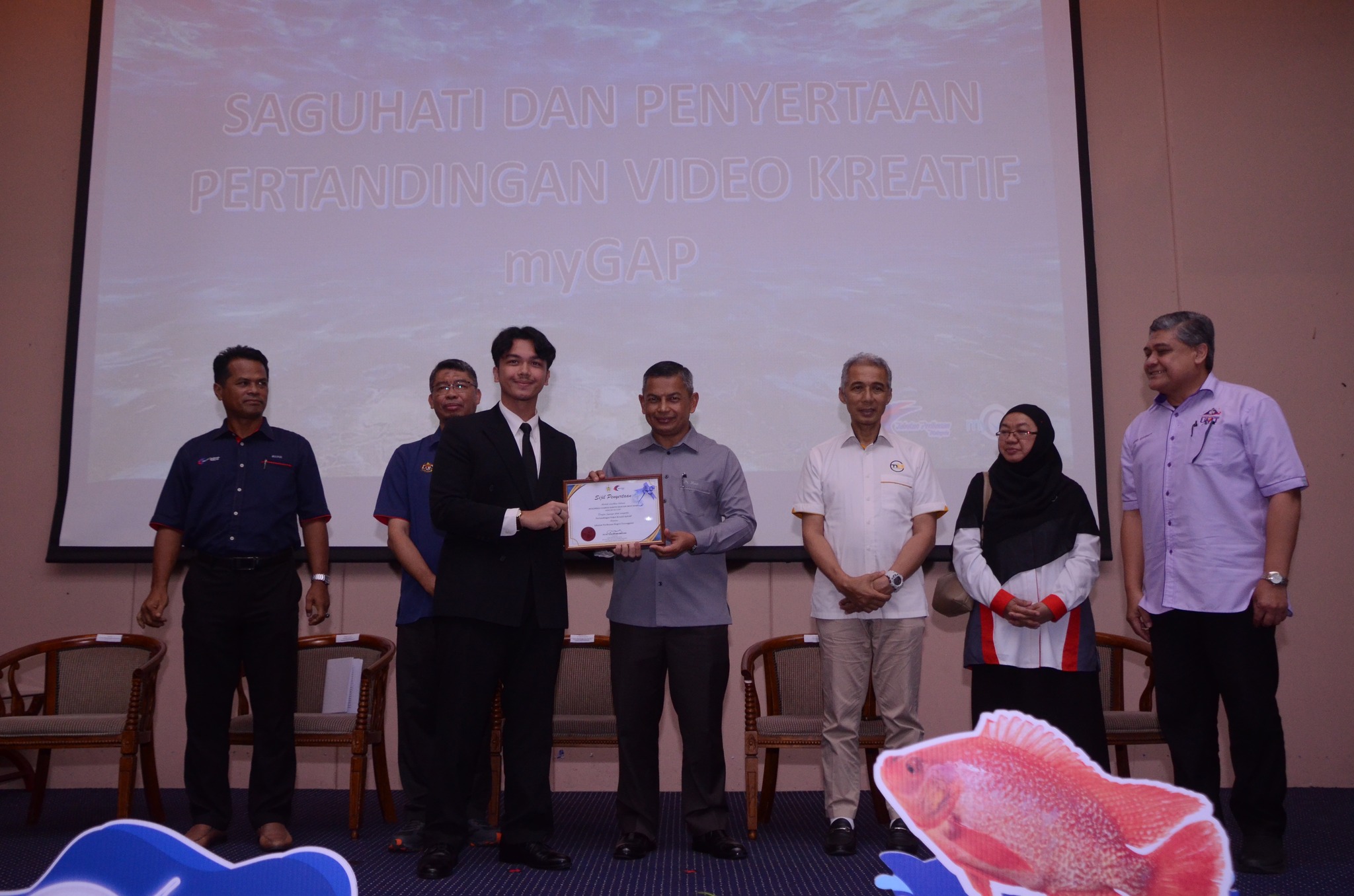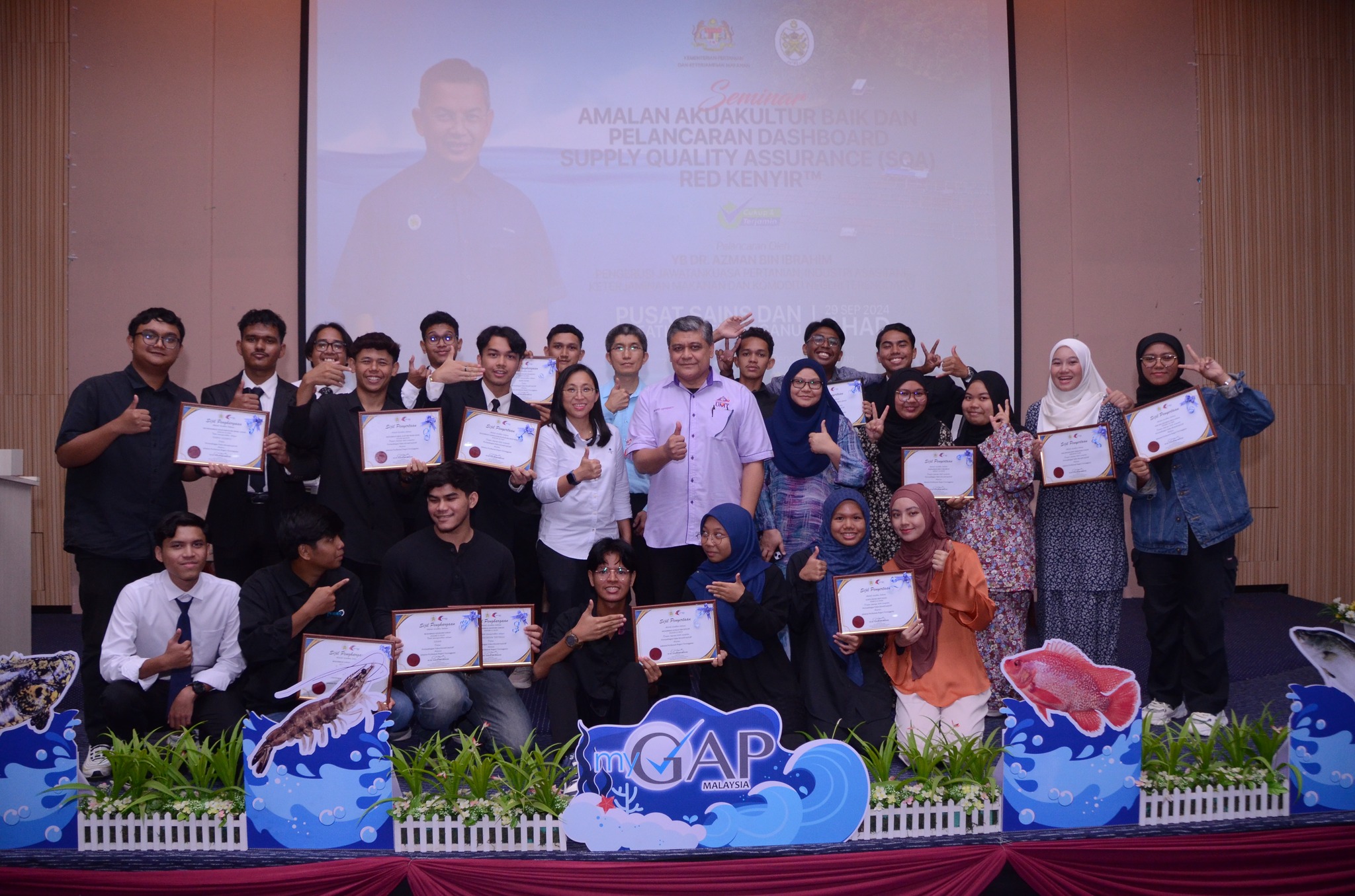 The competition themed “Malaysian Good Aquaculture Practices” – Fisheries Sector was organized by the Terengganu State Fisheries Office, Department of Fisheries Malaysia. The prize presentation was conducted during the Good Aquaculture Practices Seminar Program and the Launch of Red Kenyir™ Supply Quality Assurance (SQA) on 29 September 2024 (Sunday) at the Terengganu Science and Creativity Center, Kampung Laut, Kuala Terengganu. The launch ceremony was completed by YB Dr Azman bin Ibrahim, Chairman of the Terengganu State Agriculture, Agro-based Industry, Food Safety and Commodity Committee.