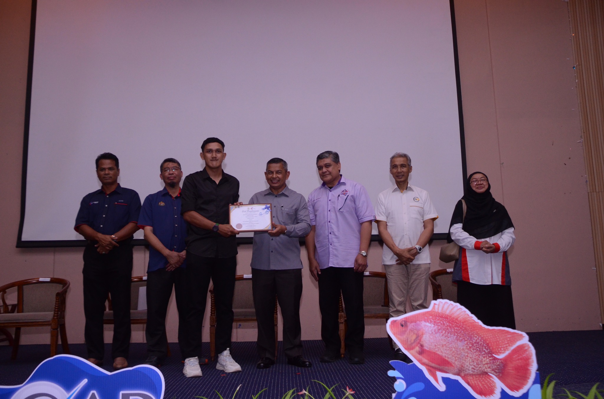 Congratulations to all consolation recipients and winners! Appreciation also to Prof Ts. Dr. Mohd Effendy bin Abd. Wahid, Dean of FPSM who accompanied the prize recipient and appointed the seminar committee to 3 FPSM lecturers, Prof Dr Najiah binti Musa, Ts. Dr. Rasina binti Abdul Rasid@Awang and Dr. Nurul Aqilah binti Iberahim. Thanks to everyone who participated and supported the effort to raise awareness of good aquaculture practices!