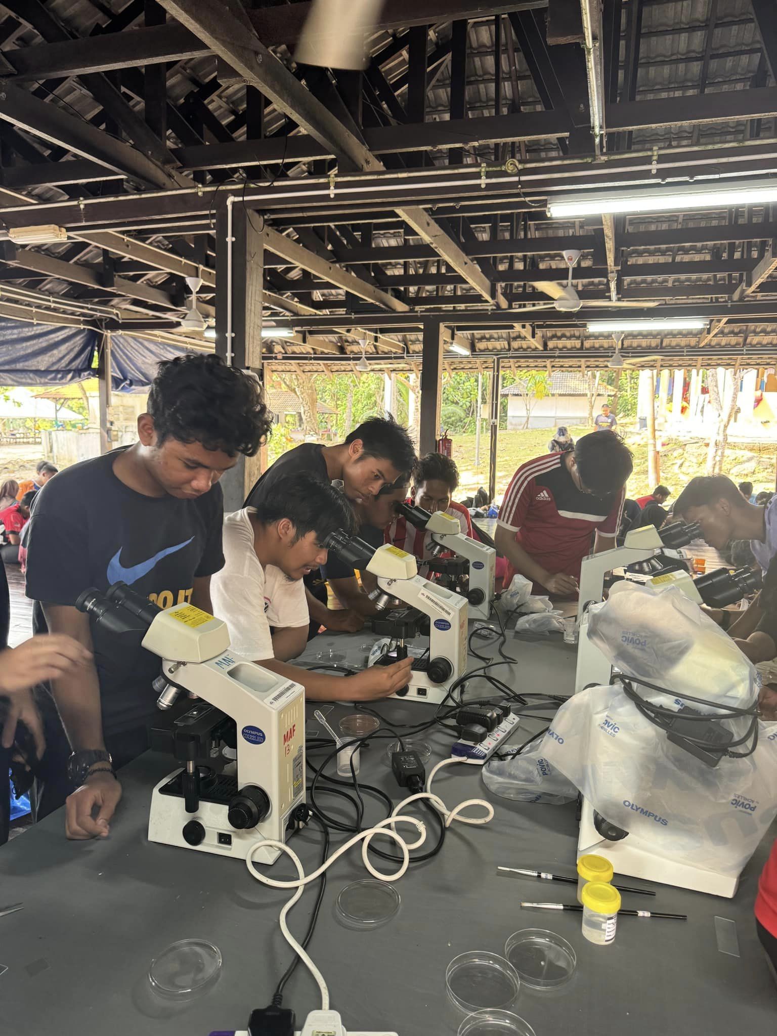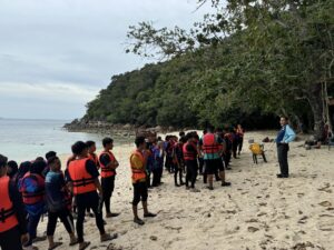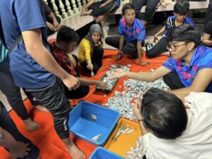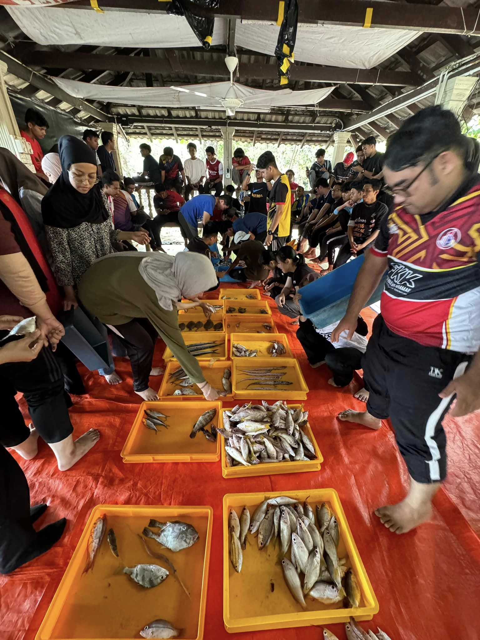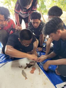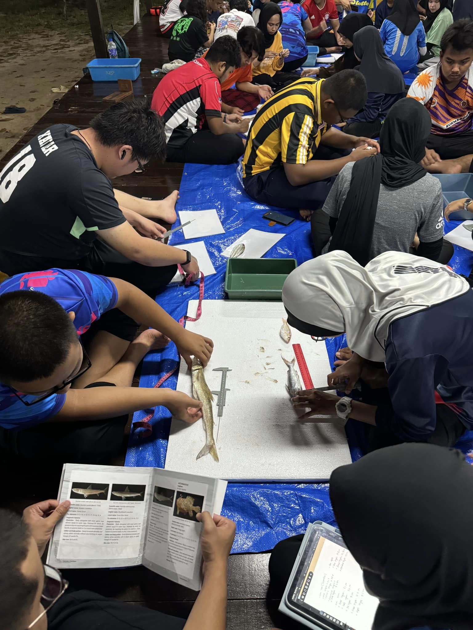 Fieldwork for Year 1 students of the Diploma in Fisheries at Bidong Island Marine Research Station. This fieldwork was attended by 105 Year 1 students to undergo practical classes for the FIS2014 (Fish Biology), FIS2024 (Fisheries Science I) and FIS2023 (Aquatic Invertebrate Biology I) courses. Among the activities carried out are identifying the species of fish caught using various fishing equipment, identifying the external and internal anatomy of marine fish and also identifying the species of aquatic invertebrates around Bidong Island.