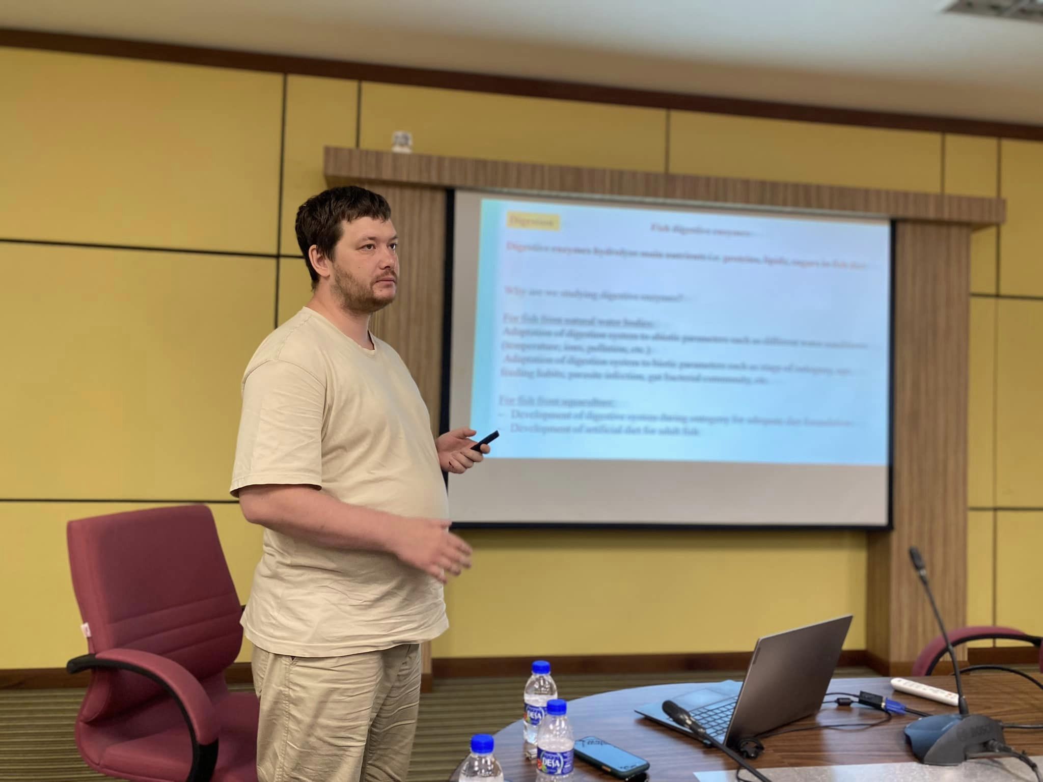 5 August 2024 I The Faculty of Fisheries and Food Sciences (FPSM) has received a visit from researchers from the Institute of Systematics and Animal Ecology under the Russian Academy of Sciences, Dr. Mikhail Solovyev and Dr. Mikhail Gopko who is an expert in the field of fish intestinal microbial community, fish digestive physiology, fish parasite infestation and phylogenetics.