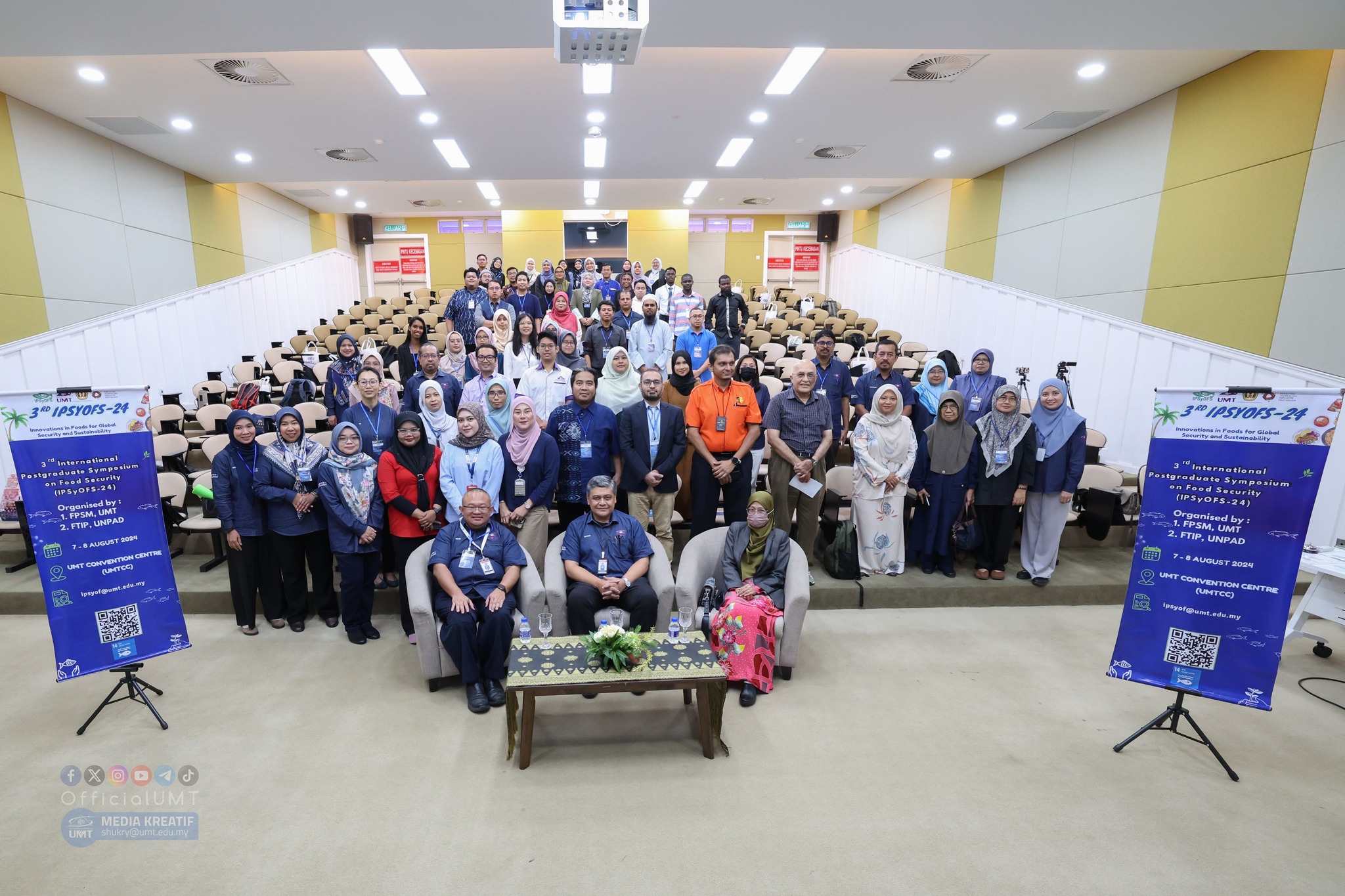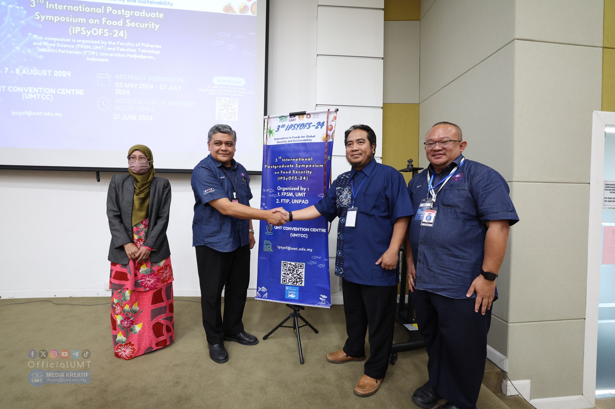 We are pleased to invite you to attend the 3rd International Postgraduate Symposium on Food Safety 2024 (IPSyOFS-24). The conference will be held at the Universiti Malaysia Terengganu Convention Center (UMTCC) and in hybrid mode. The symposium was organized by the Faculty of Fisheries and Food Science, Universiti Malaysia Terengganu (UMT) and the Faculty of Agricultural Industry Technology (FTIP), Universitas Padjadjaran (UNPAD), Indonesia. Here are the program specifications: