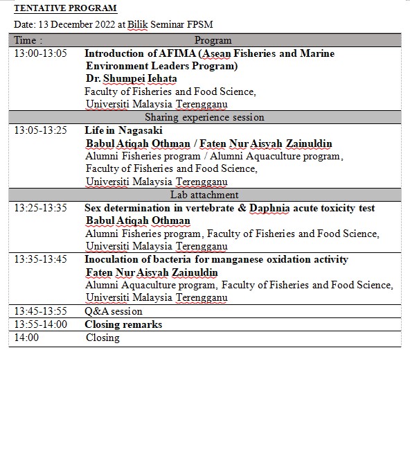 AFIMA(Asean Fisheries and Marine Environment Leaders) PROGRAM 2022