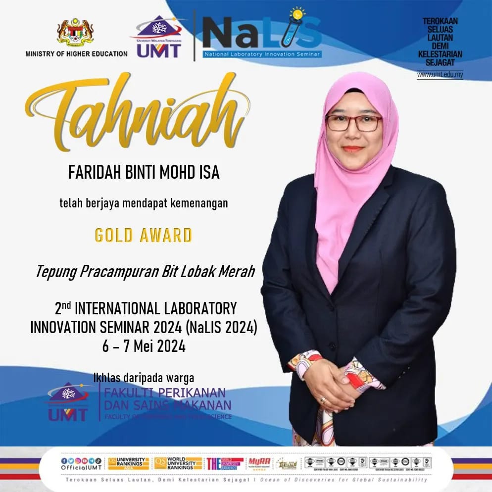 Congratulations to the food science laboratory staff for successfully winning the Gold Award at the 2nd International Laboratory Innovation Seminar 2024 (NaLIS 2024) which took place on 6-7 May 2024.
