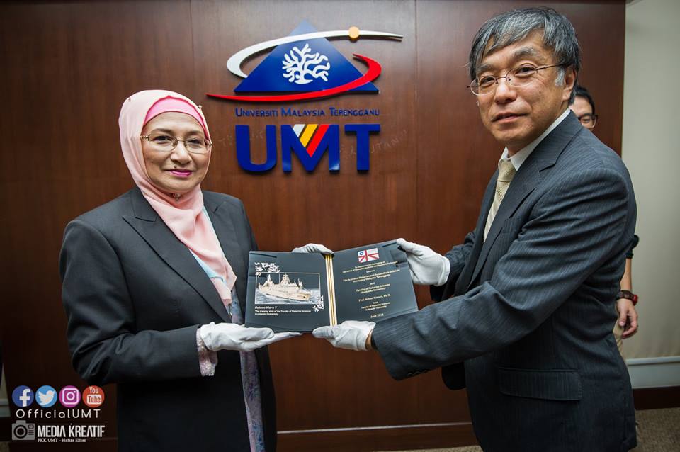 24th June 2018 – This LOI signing ceremony was signed between Dean School of Fisheries and Aquaculture Sciences (PPSPA), Professor Dr. Najiah Binti Musa and Prof. Nobuo Kimura as Dean of the Faculty, Graduate School, School of Fishery Sciences, Hokkaido University, Japan on 24 June 2018. The LOI signing ceremony was witnessed by Professor Dato' Dr. Nor Aieni Haji Mokhtar as Vice-Chancellor of Universiti Malaysia Terengganu. Congratulations to Dean School of fisheries and aquaculture sciences (PPSPA),Professor Dr. Najiah Binti Musa, Deputy Dean (Academic and Hep), Associate Professor Dr Mohd Hanafi Idris, Deputy Dean (Talent and Research), Dr. Shahreza Bin Md. Sheriff, Program Coordinators, Academicians and not forgetting Dr. Shumpei Iehata who worked hard in managing the agreement documents successfully. Hopefully,the dynamic relationships both of Universiti Malaysia Terengganu and University of Hokkaido to be better, strong and sustainable in the field of fisheries and aquaculture. This advantages expected lead to the signing of the MOU in the near future.