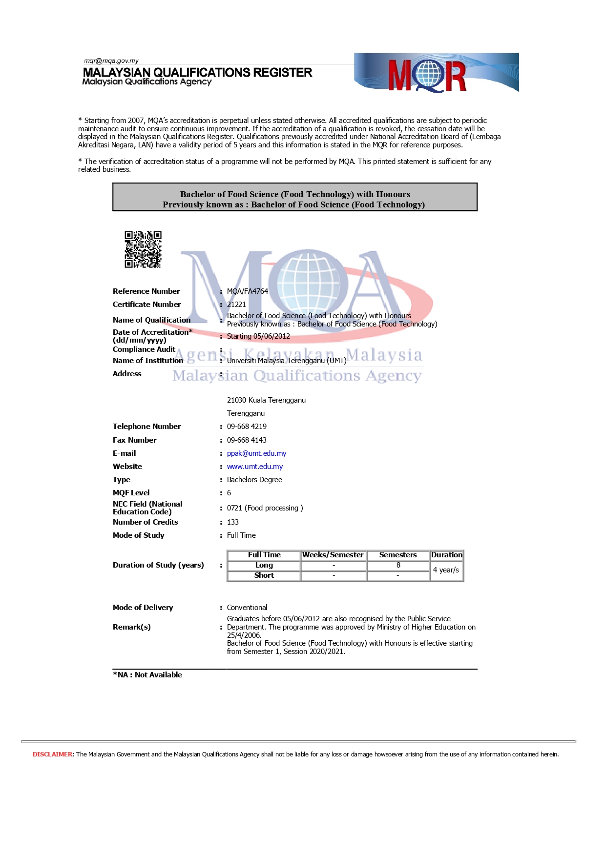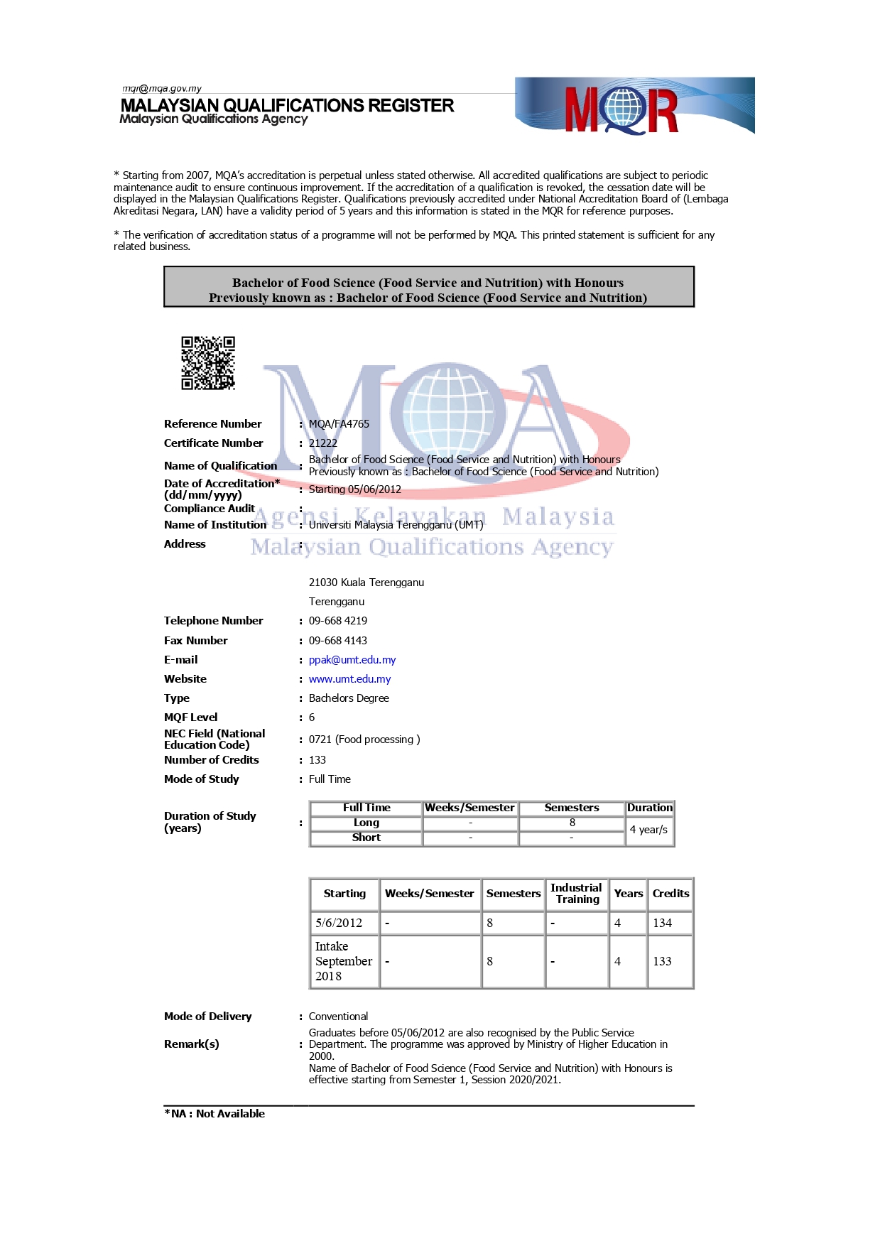 ii. Sarjana Muda Sains Makanan (Perkhidmatan Makanan dan Pemakanan) dengan kepujian