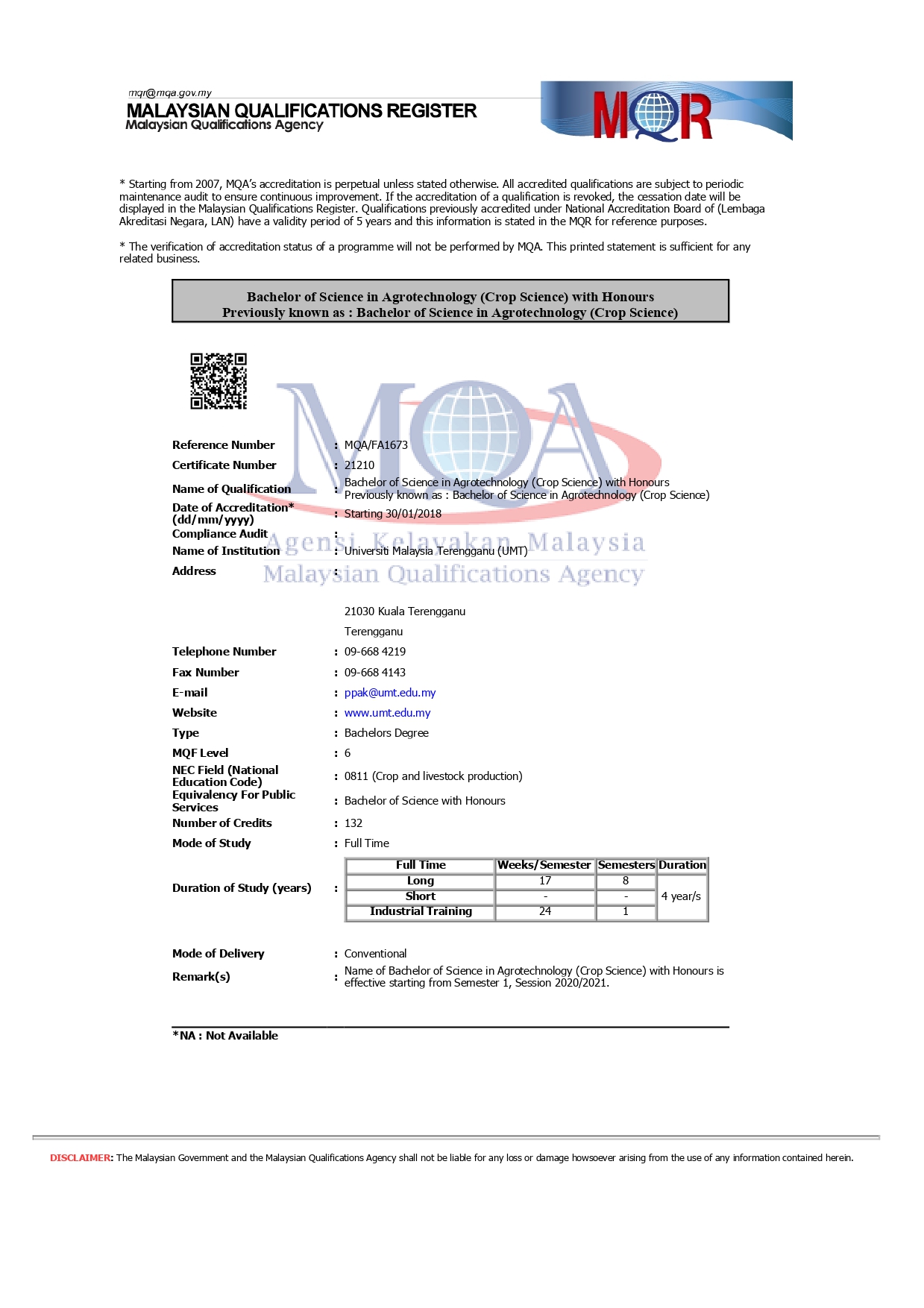 v. SARJANA MUDA SAINS AGROTEKNOLOGI (SAINS TANAMAN) DENGAN KEPUJIAN